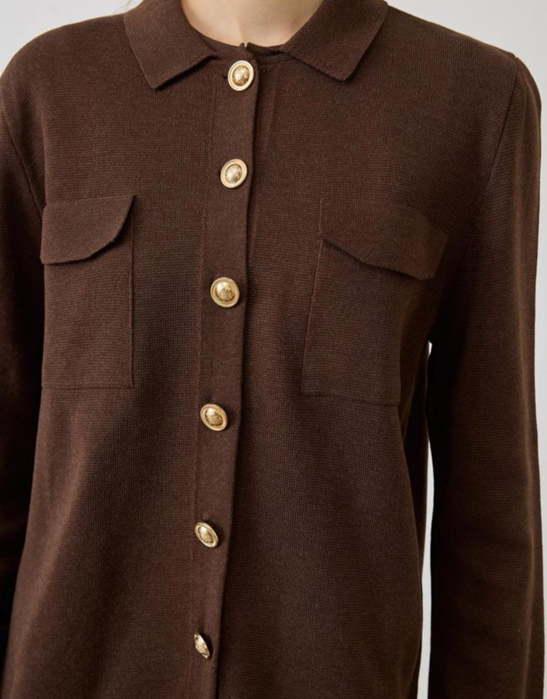 Meva Gömlek Yaka Triko Hırka Lacivert