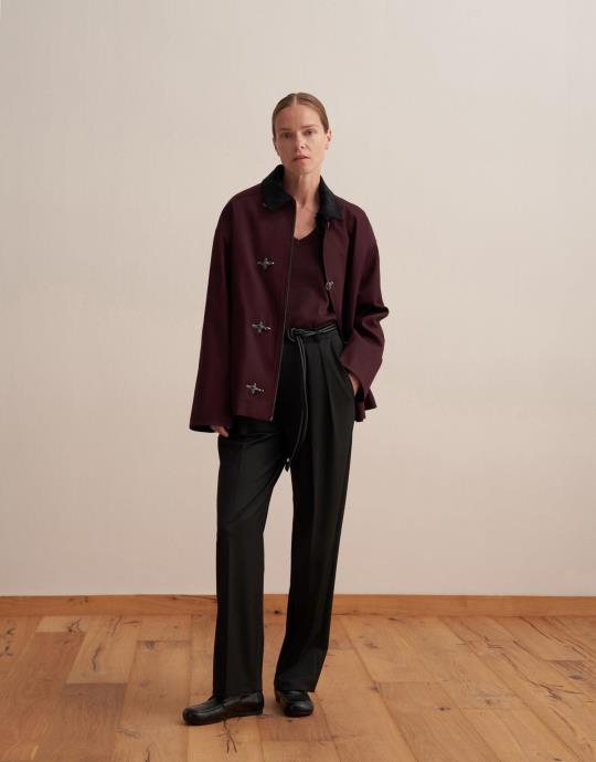 Kapitone Astarlı Kadife Yaka Parka Mürdüm