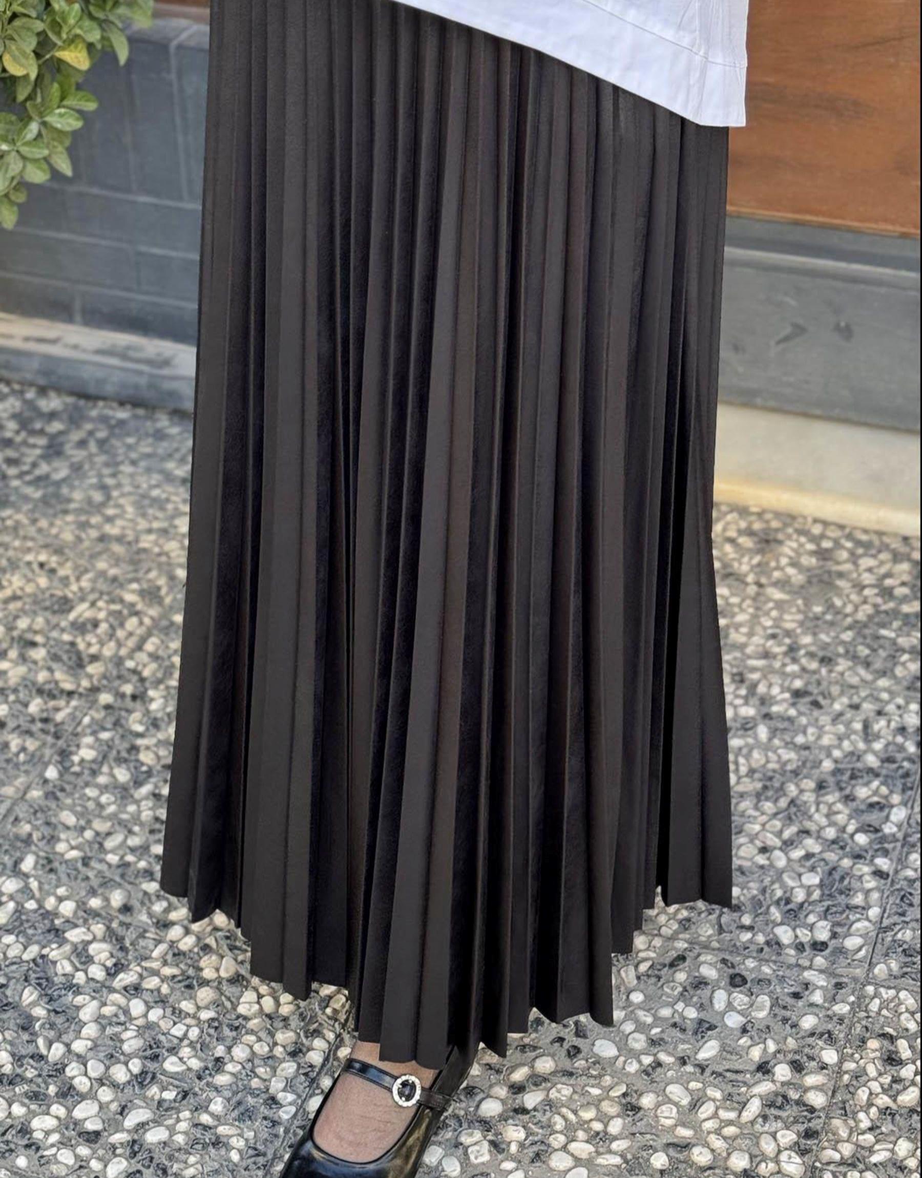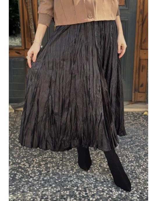 Deri Pileli Etek Siyah