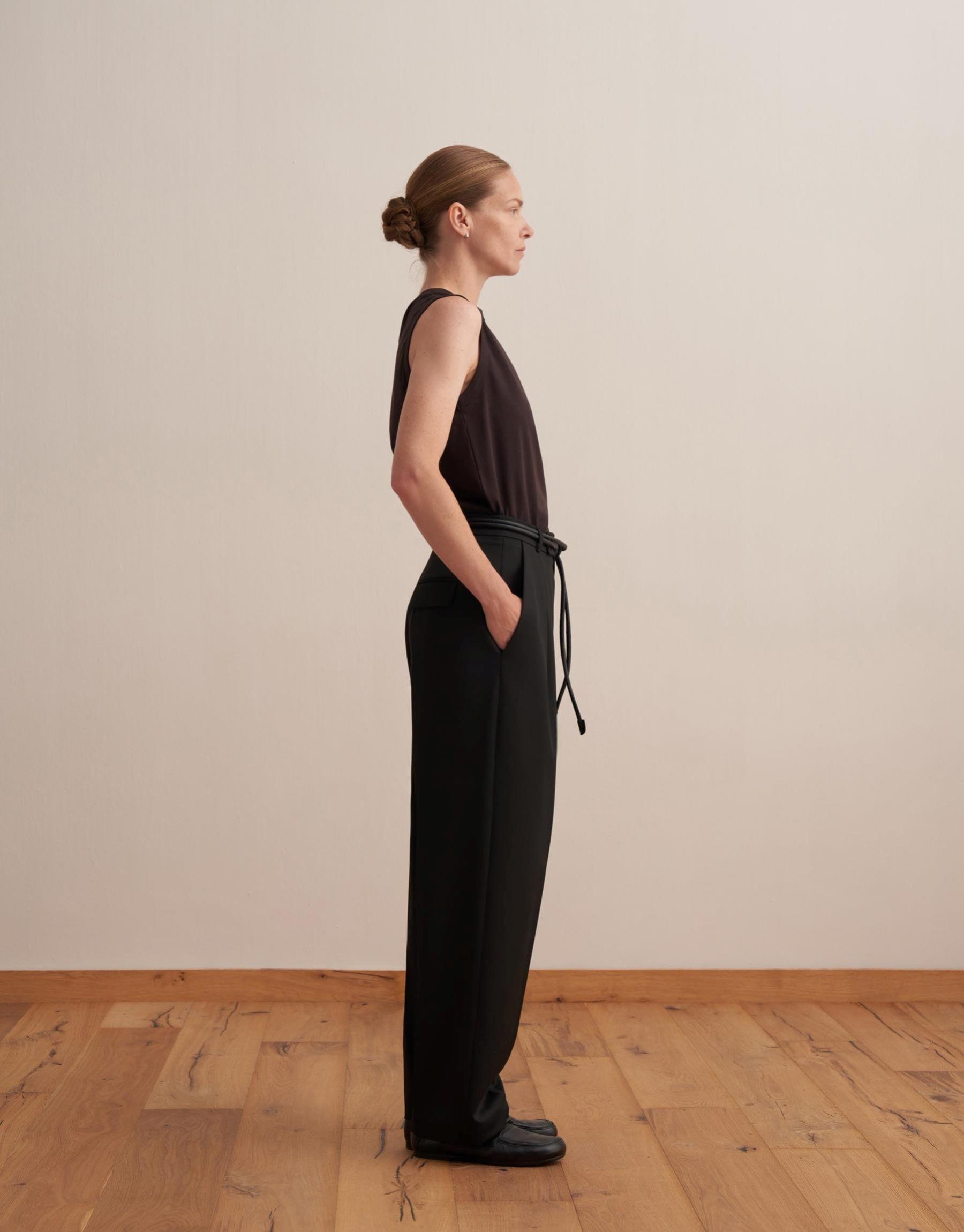 Paçası Ayarlanabilir İpeksi Pantolon Lacivert