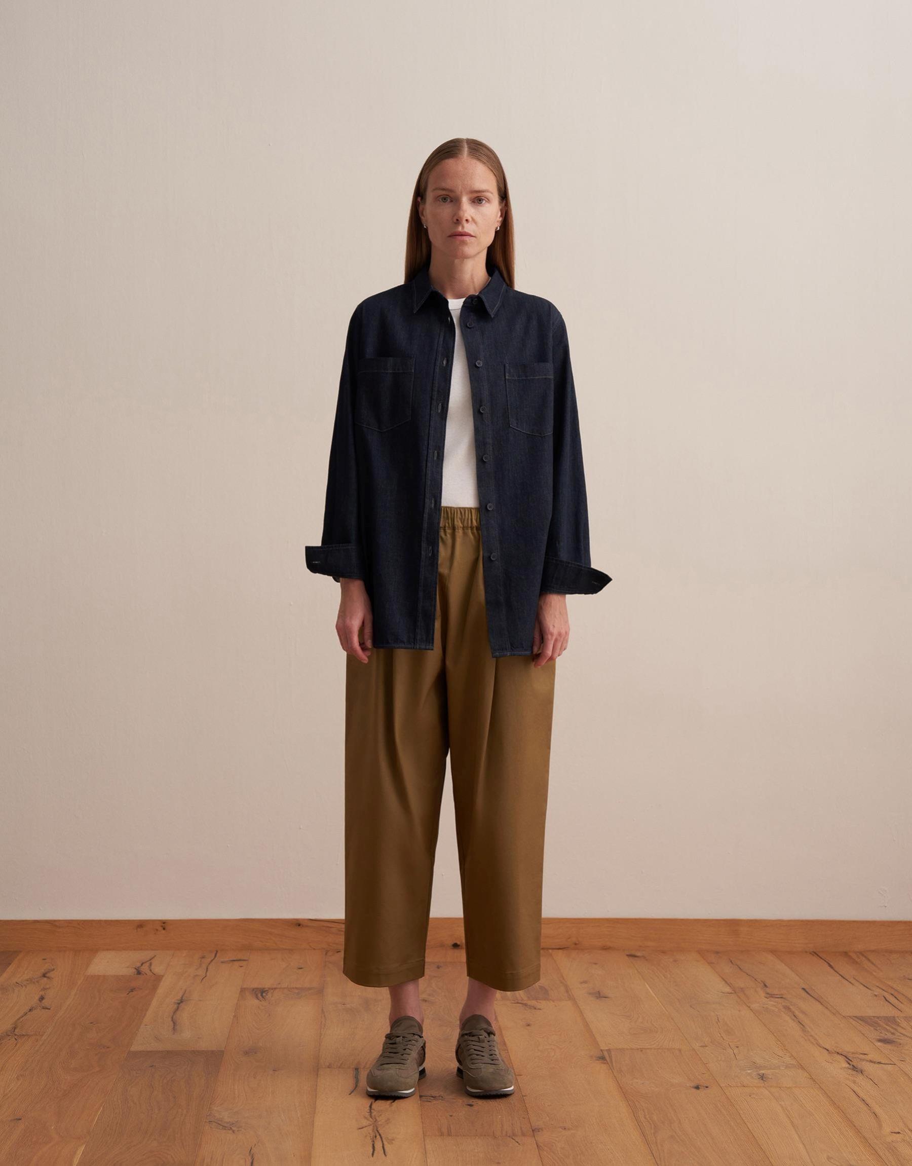 Pileli Tencel Pantolon Haki