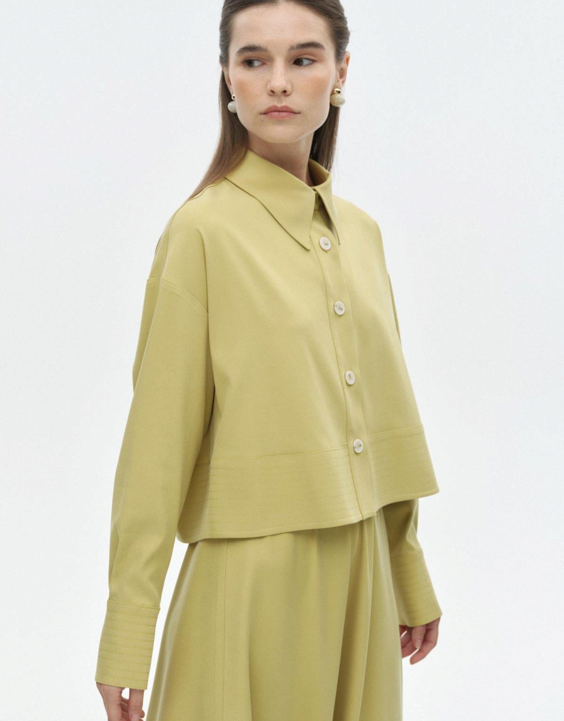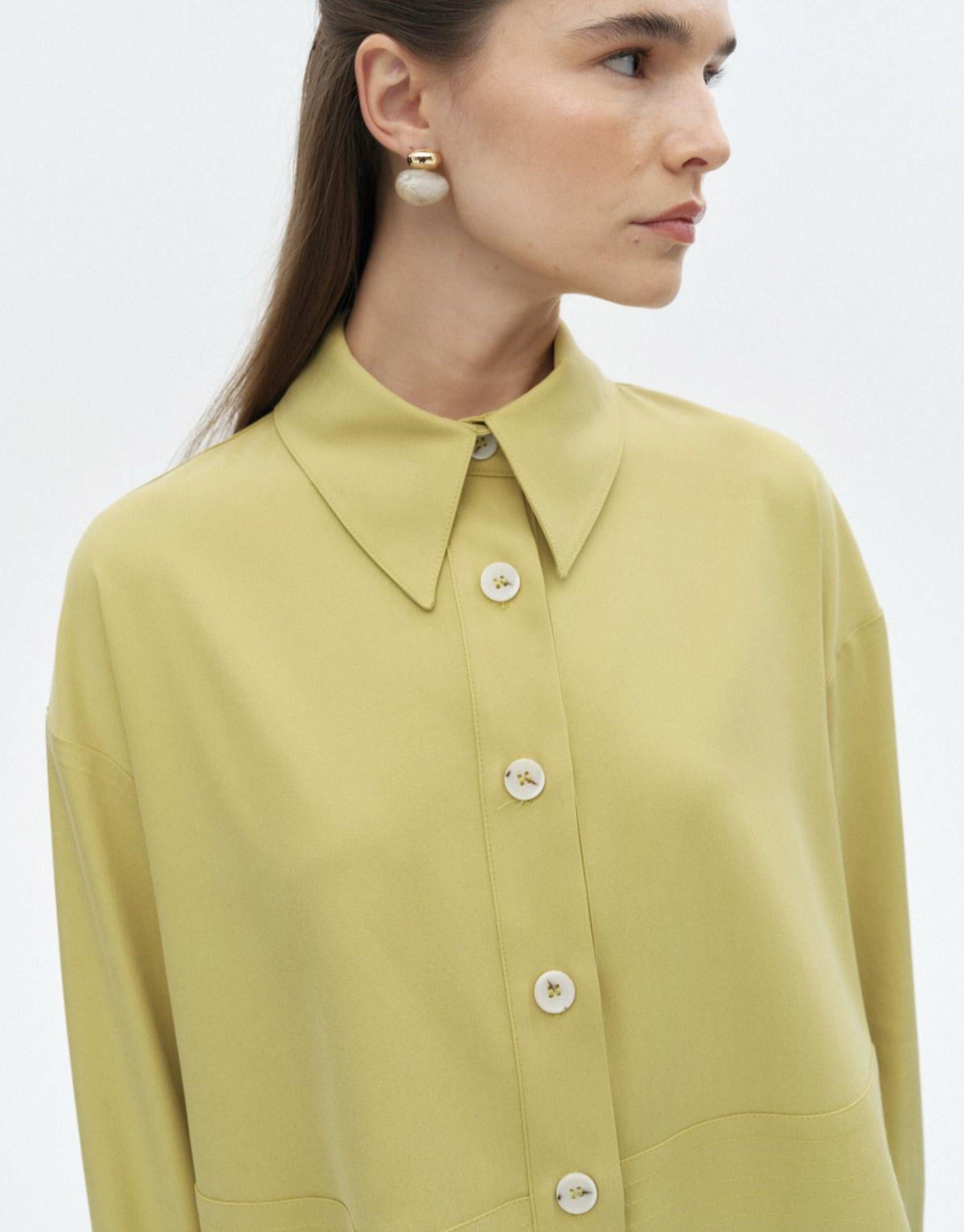 Çıtçıt Kapamalı İpeksi Gömlek Haki