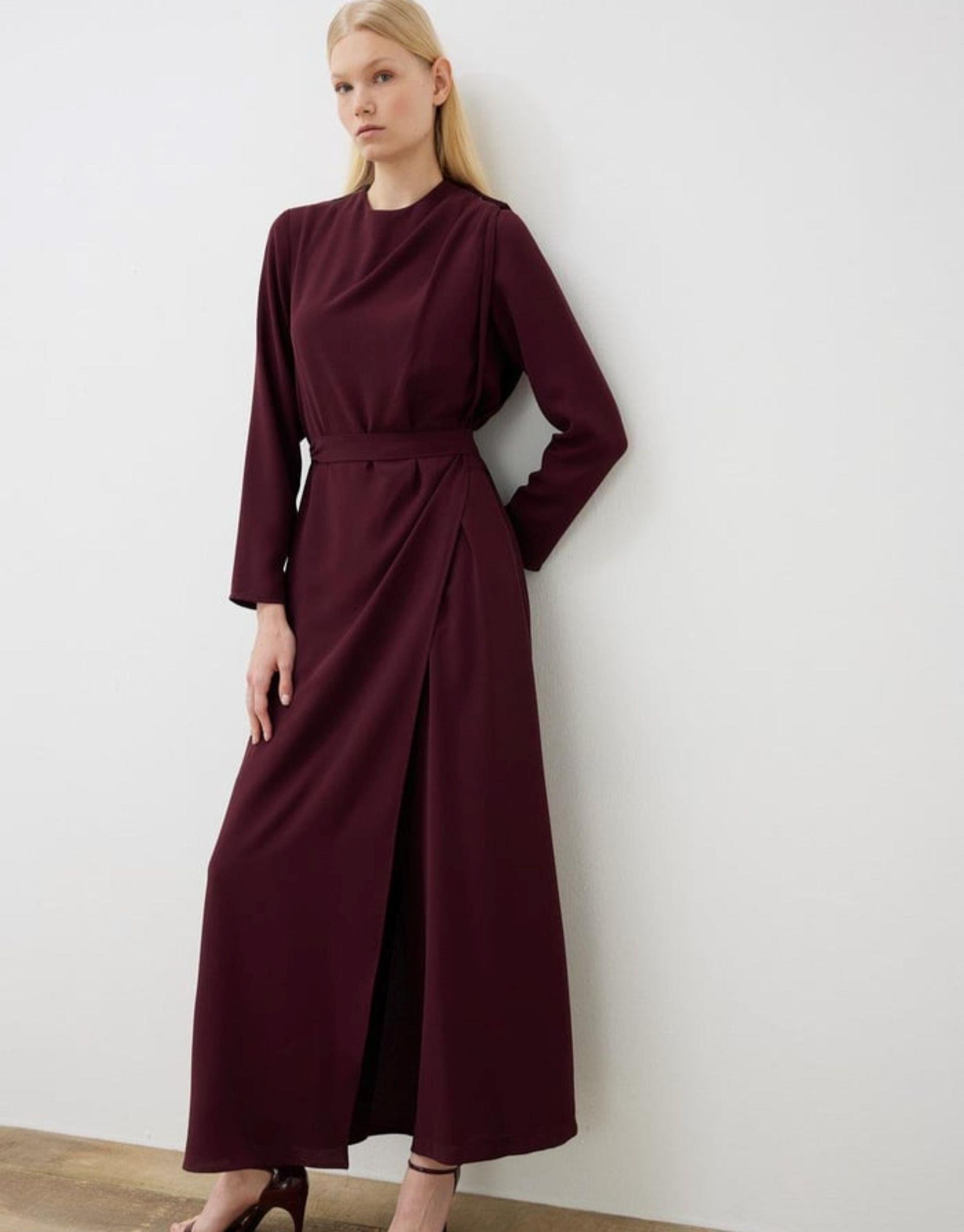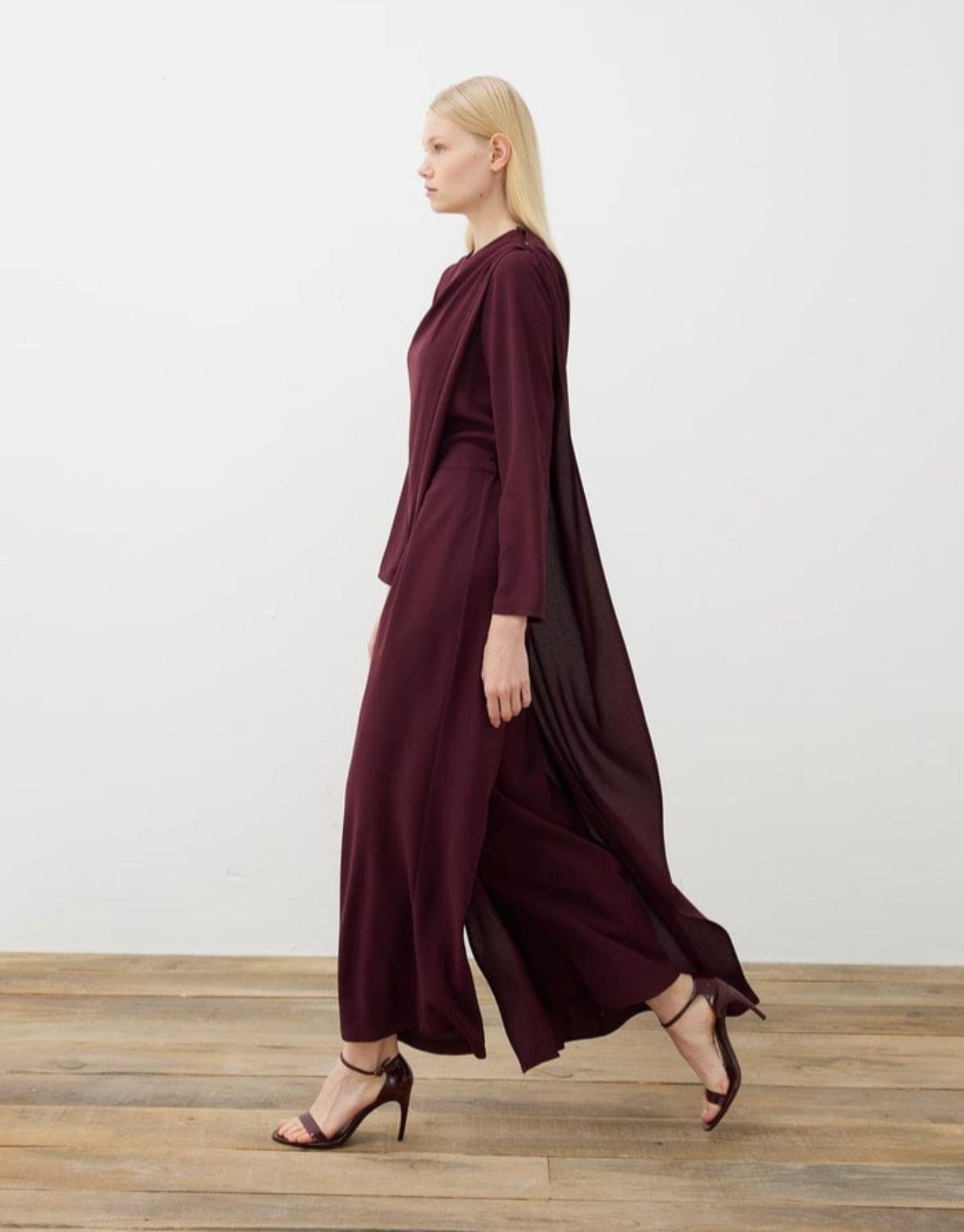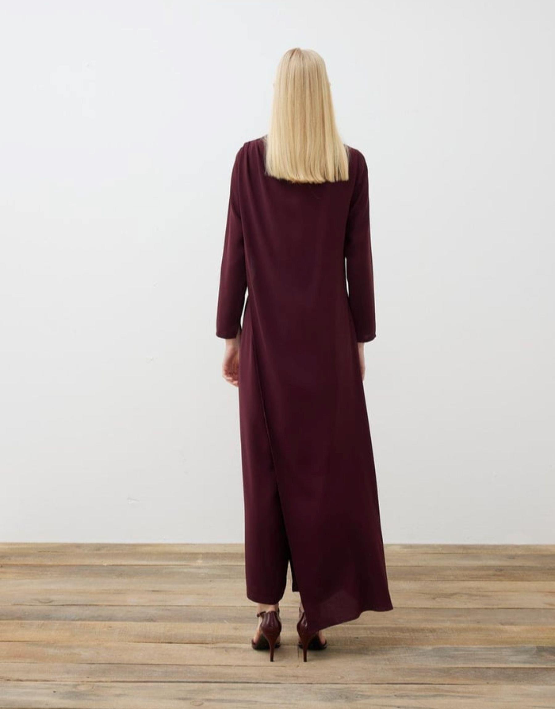 Mia Ön Ve Arka Kapalı Tulum Bordo