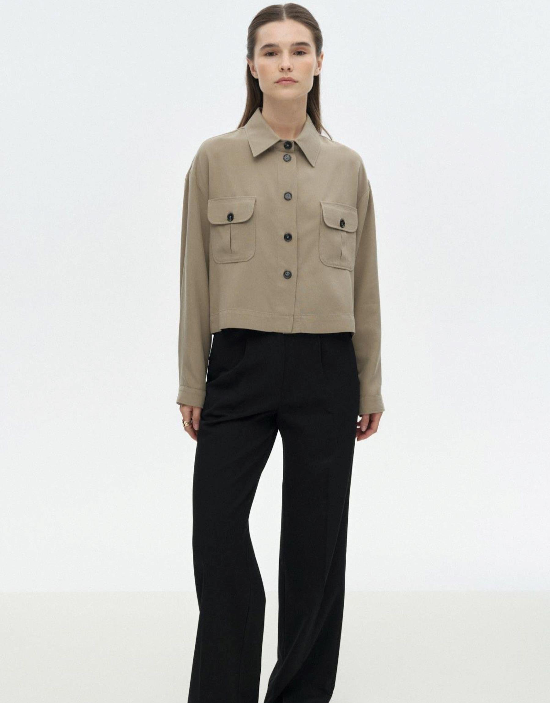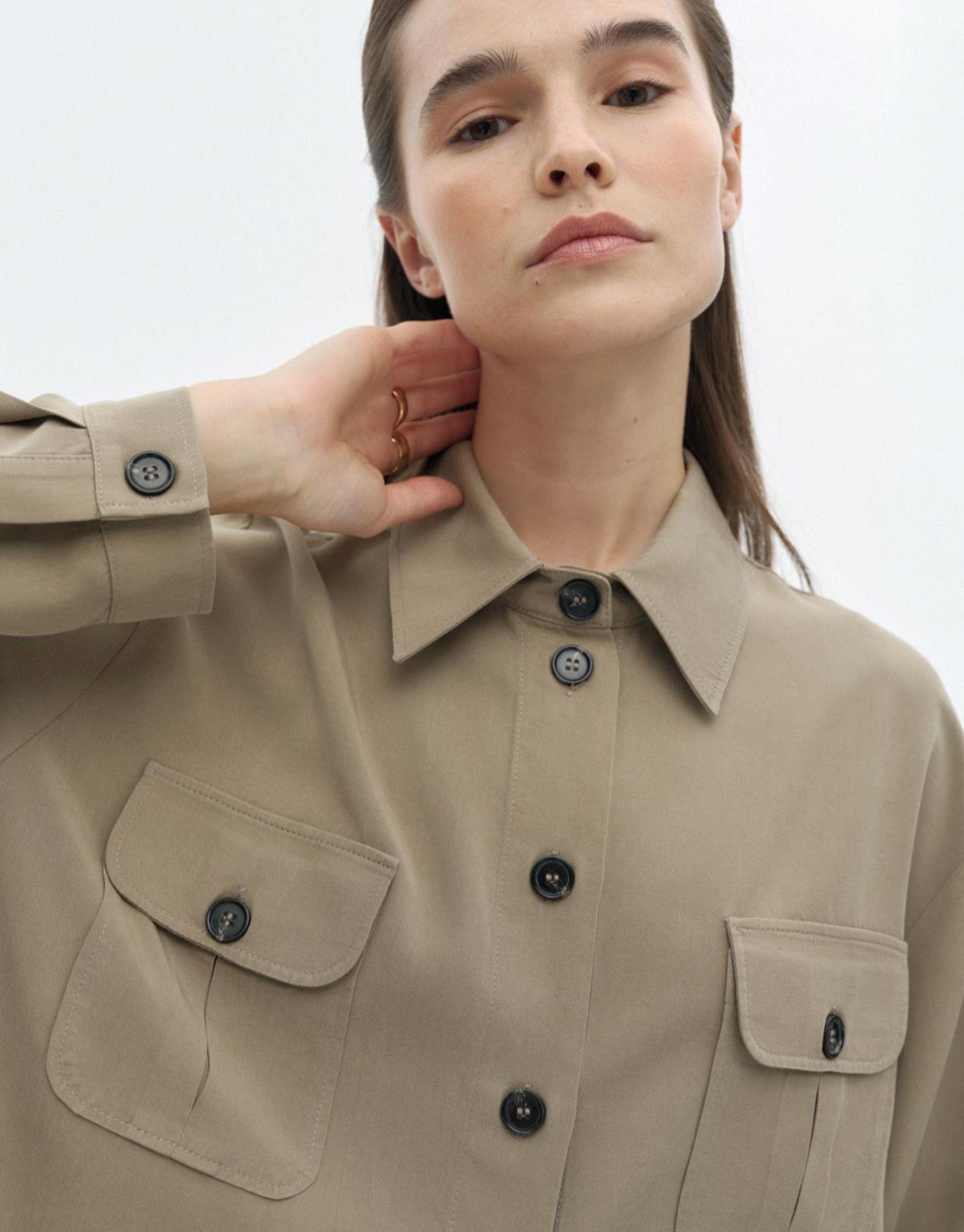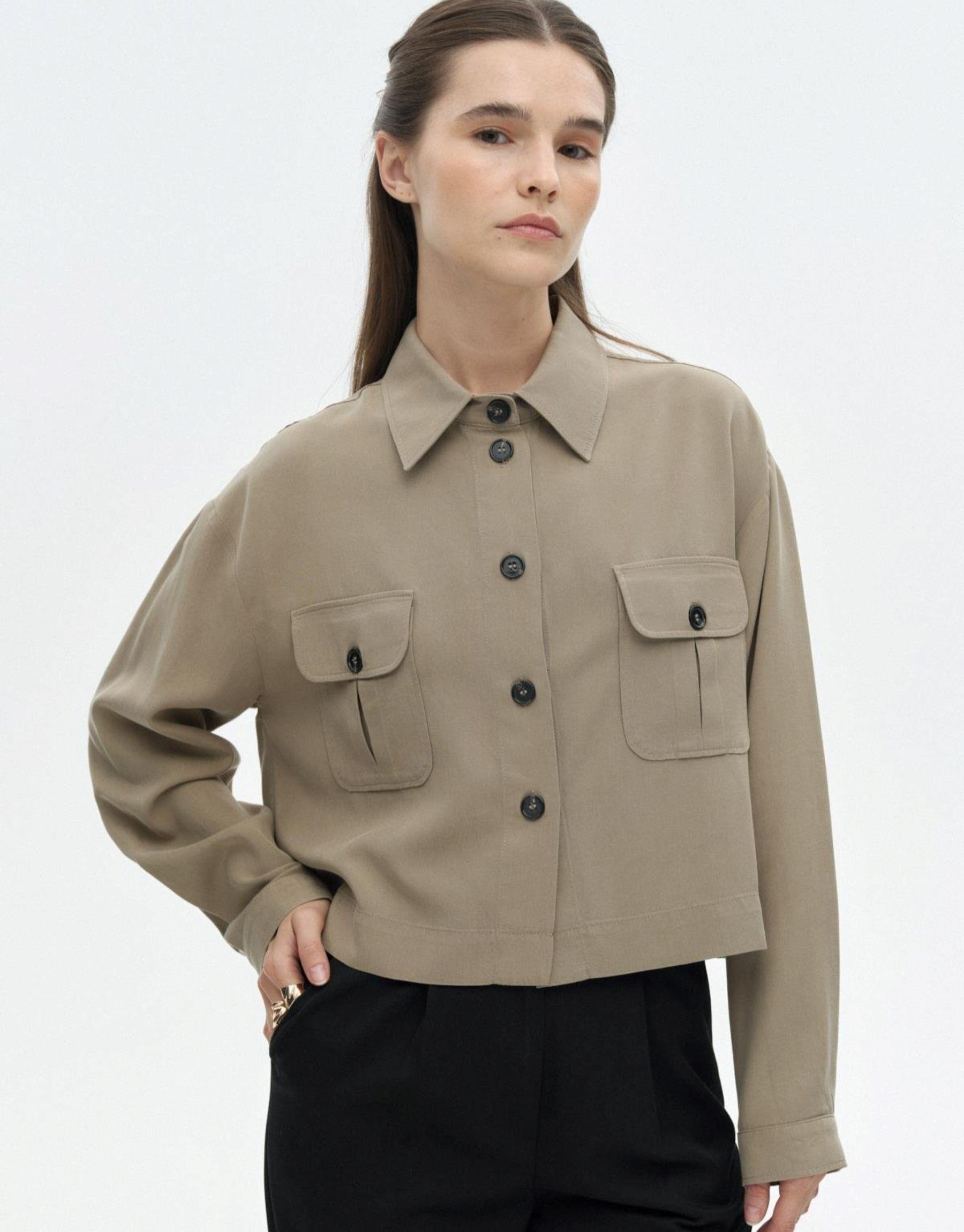 Çıtçıt Kapamalı İpeksi Gömlek Haki