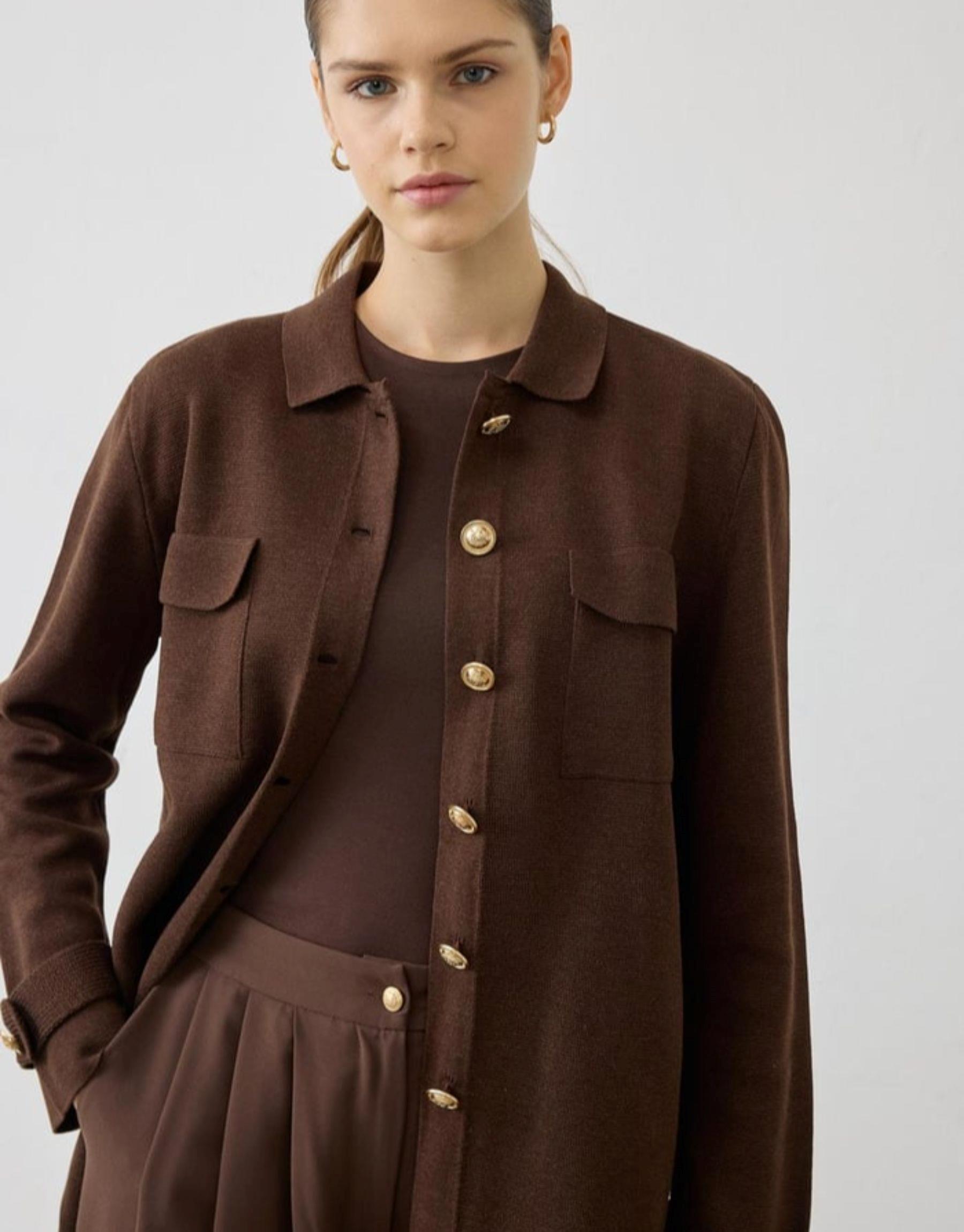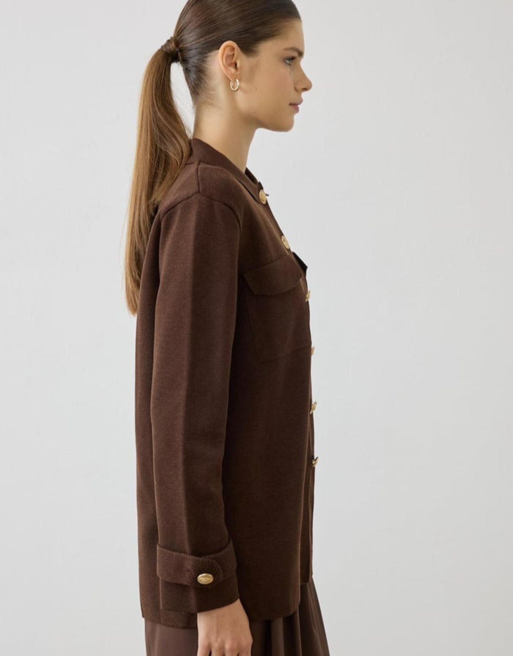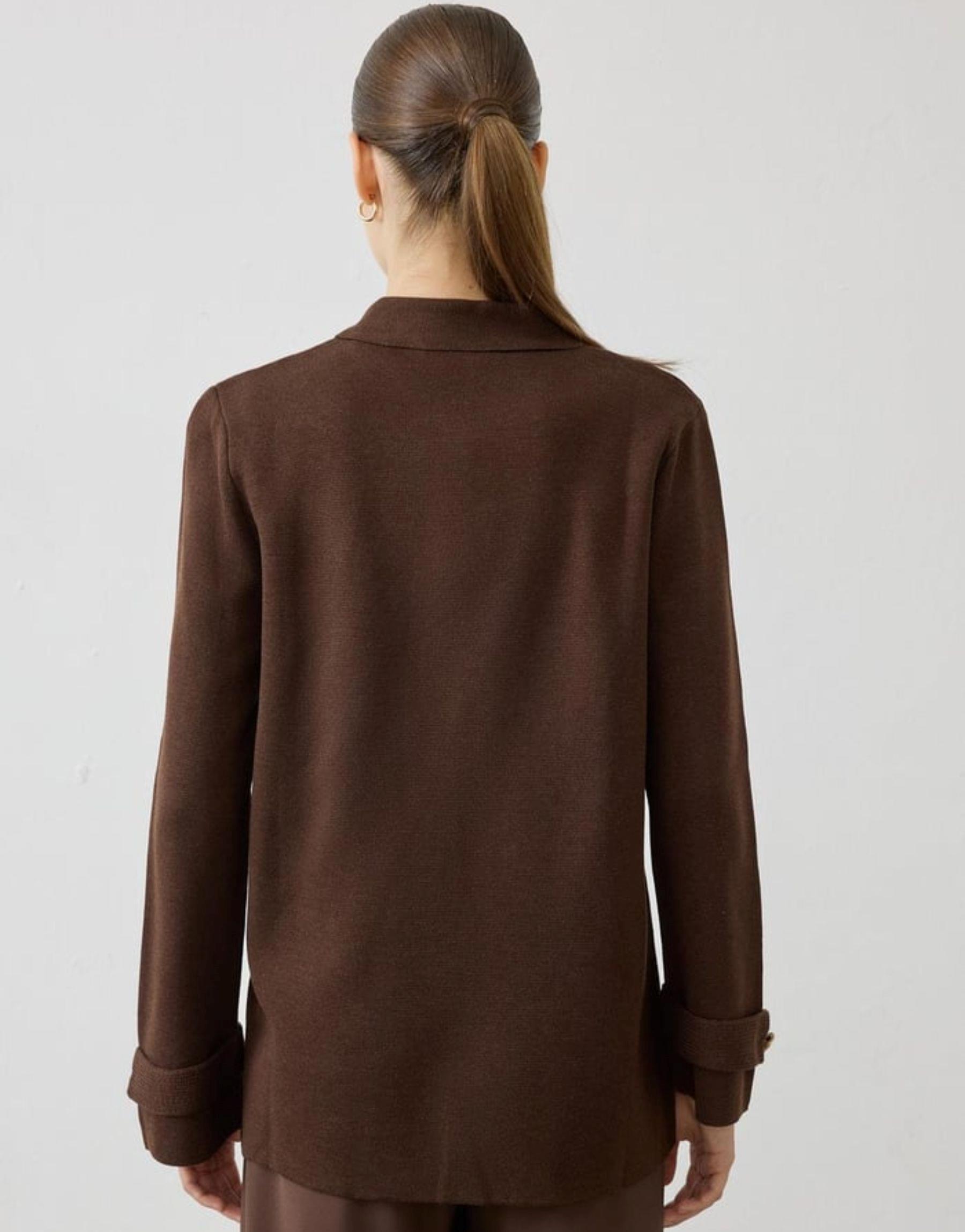 Meva Gömlek Yaka Triko Hırka Lacivert