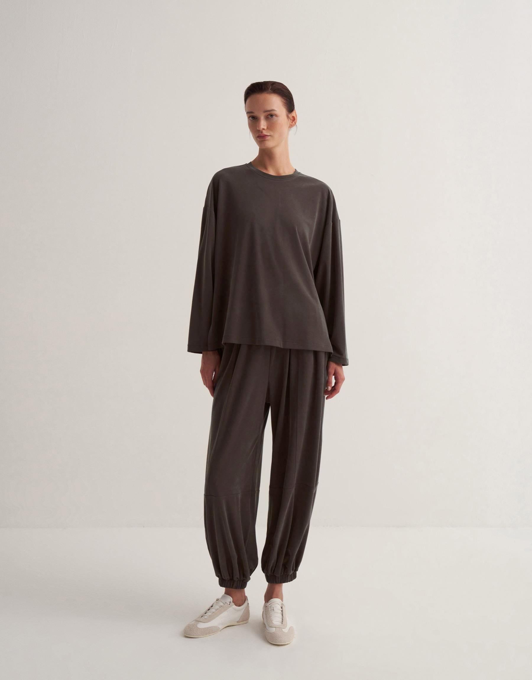 Elena Saten Pantolonlu Takım Acı Kahve