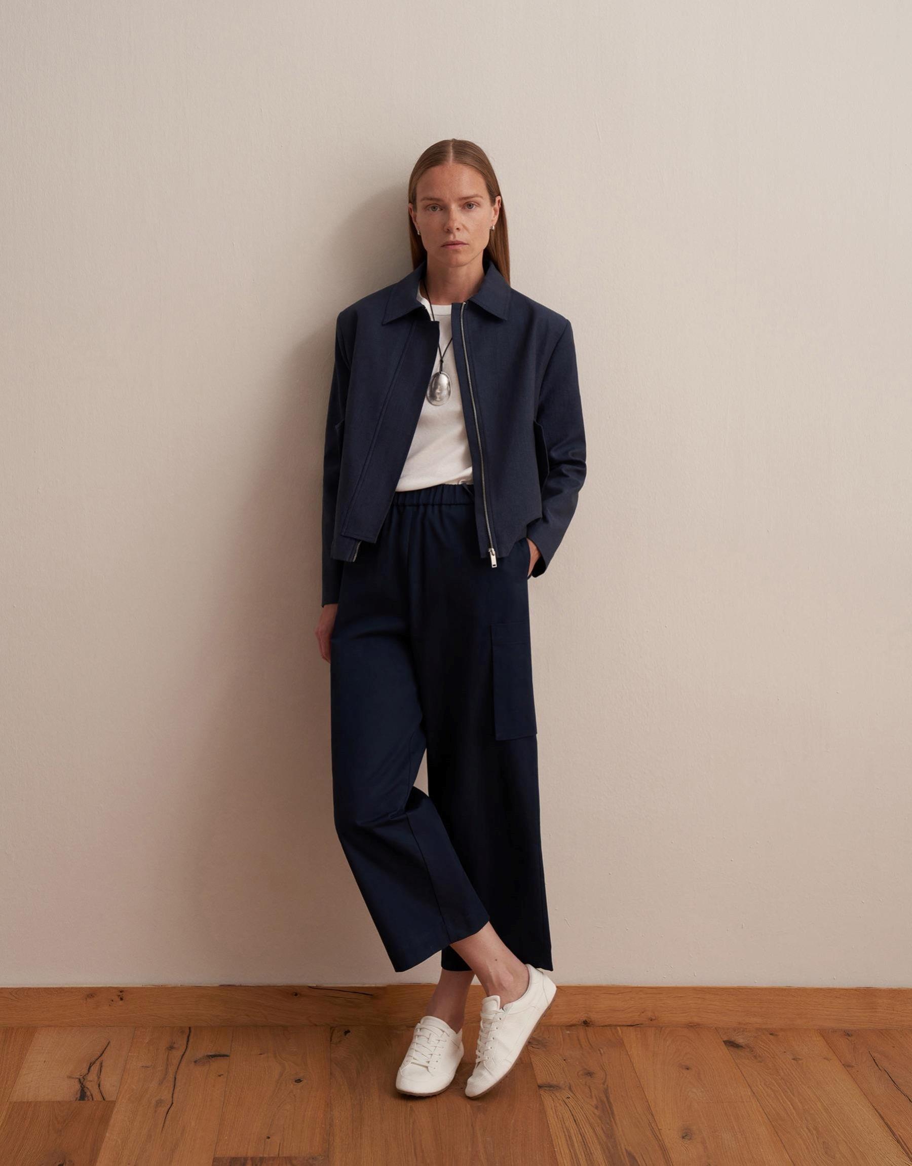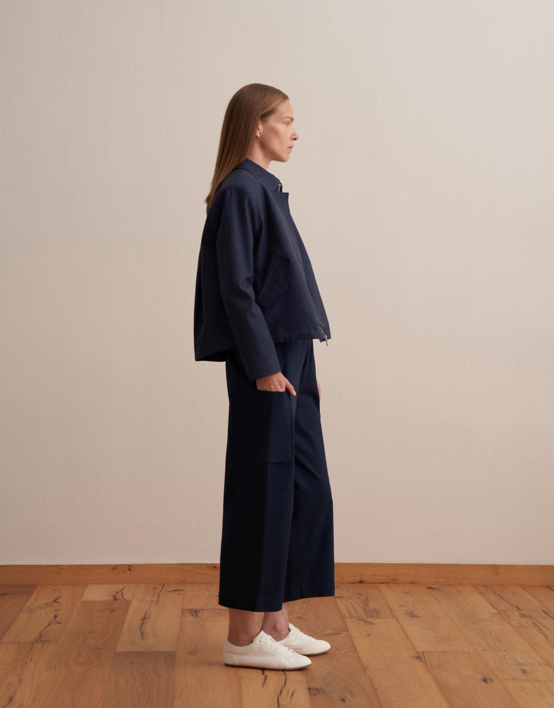 Paçası Ayarlanabilir İpeksi Pantolon Lacivert
