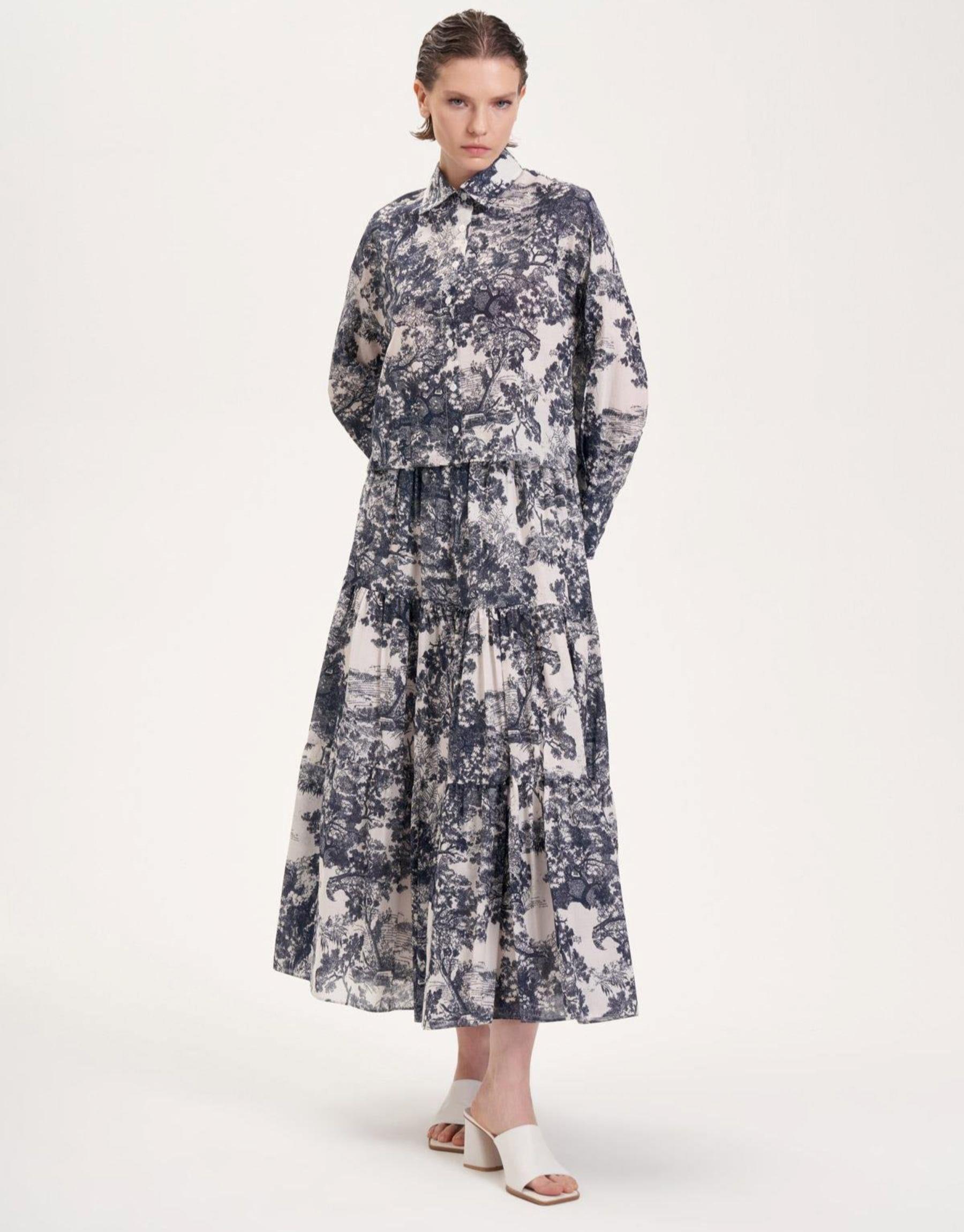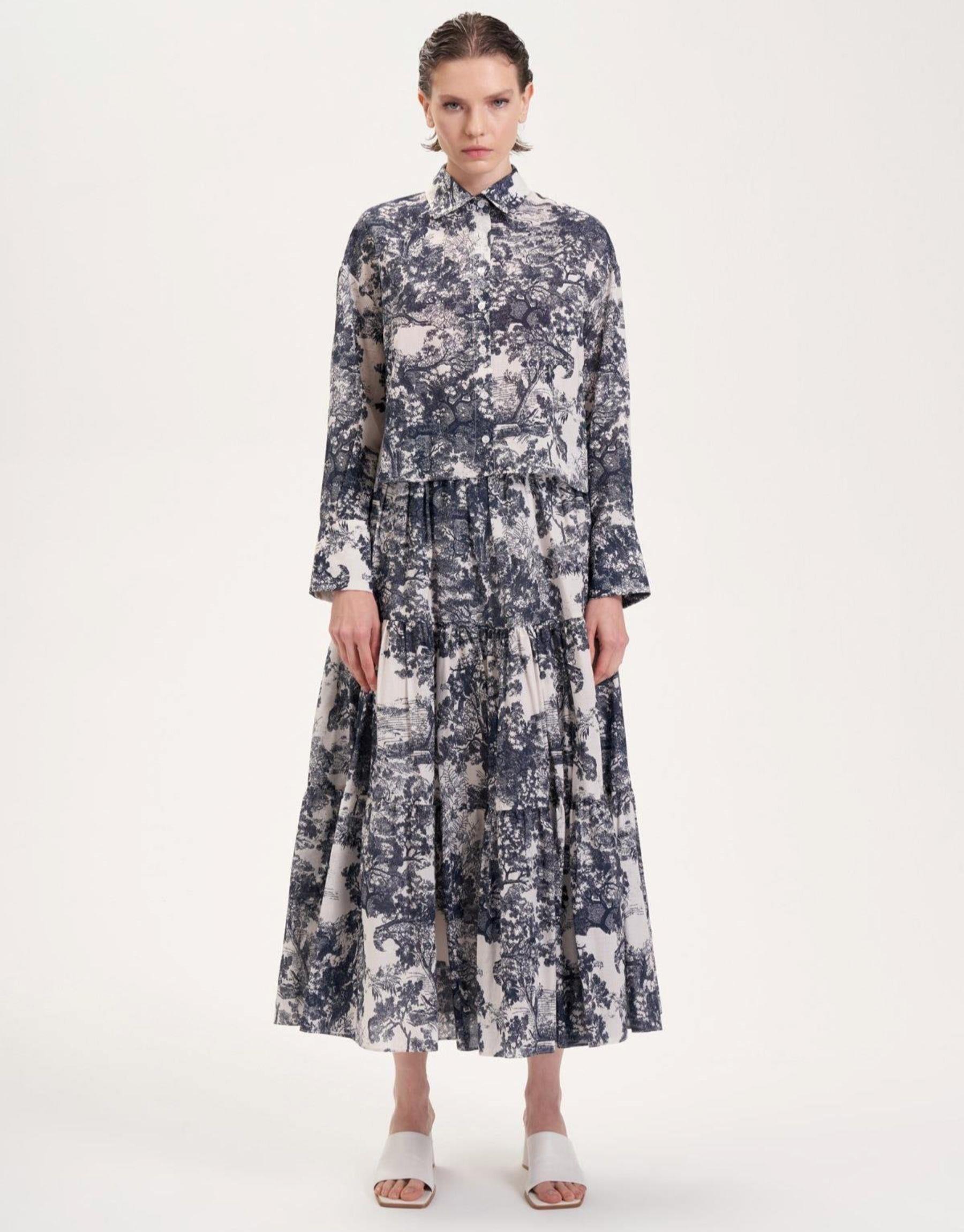 Blanc Desenli Rayon Viskon Pileli Mavi