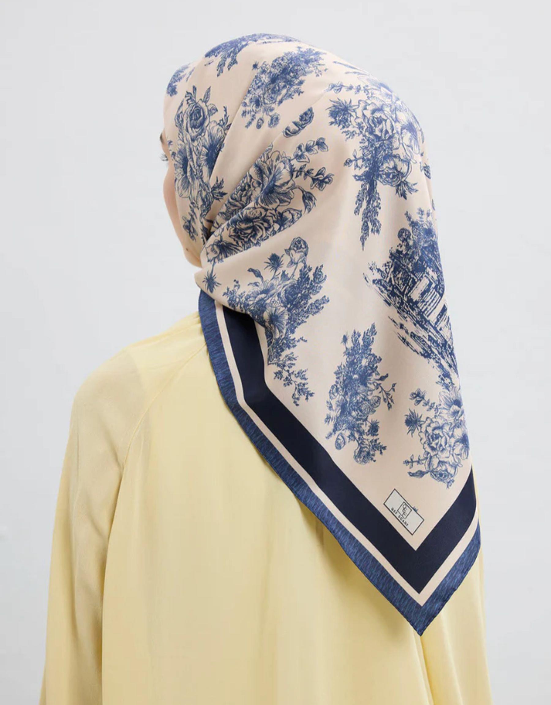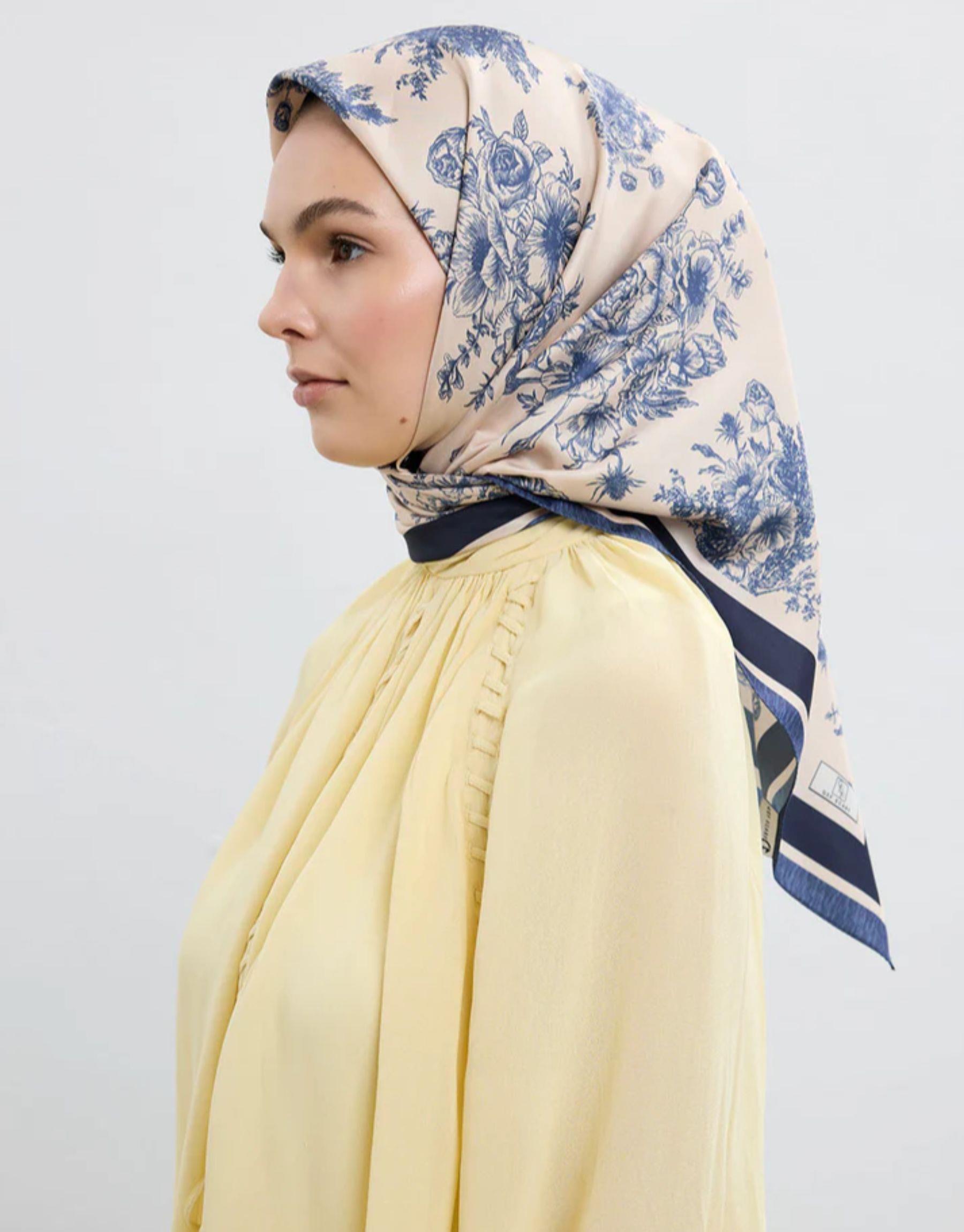 Desenli Pamuk Eşarp Blue Navi Koyu Mavi