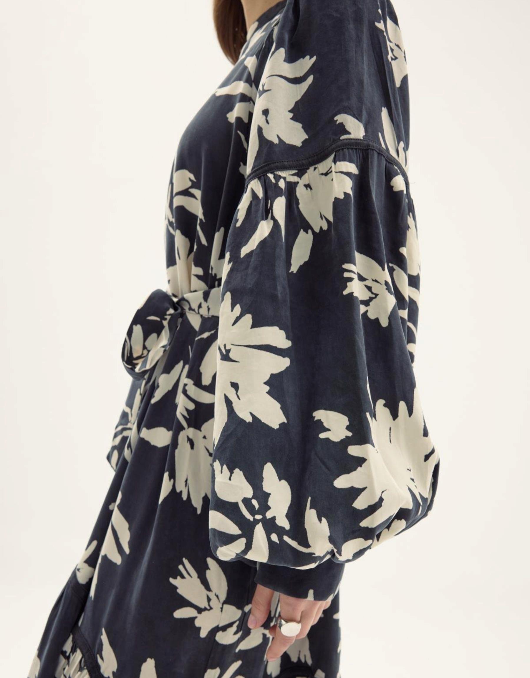 Natural Keten Gömlek Elbise Lacivert