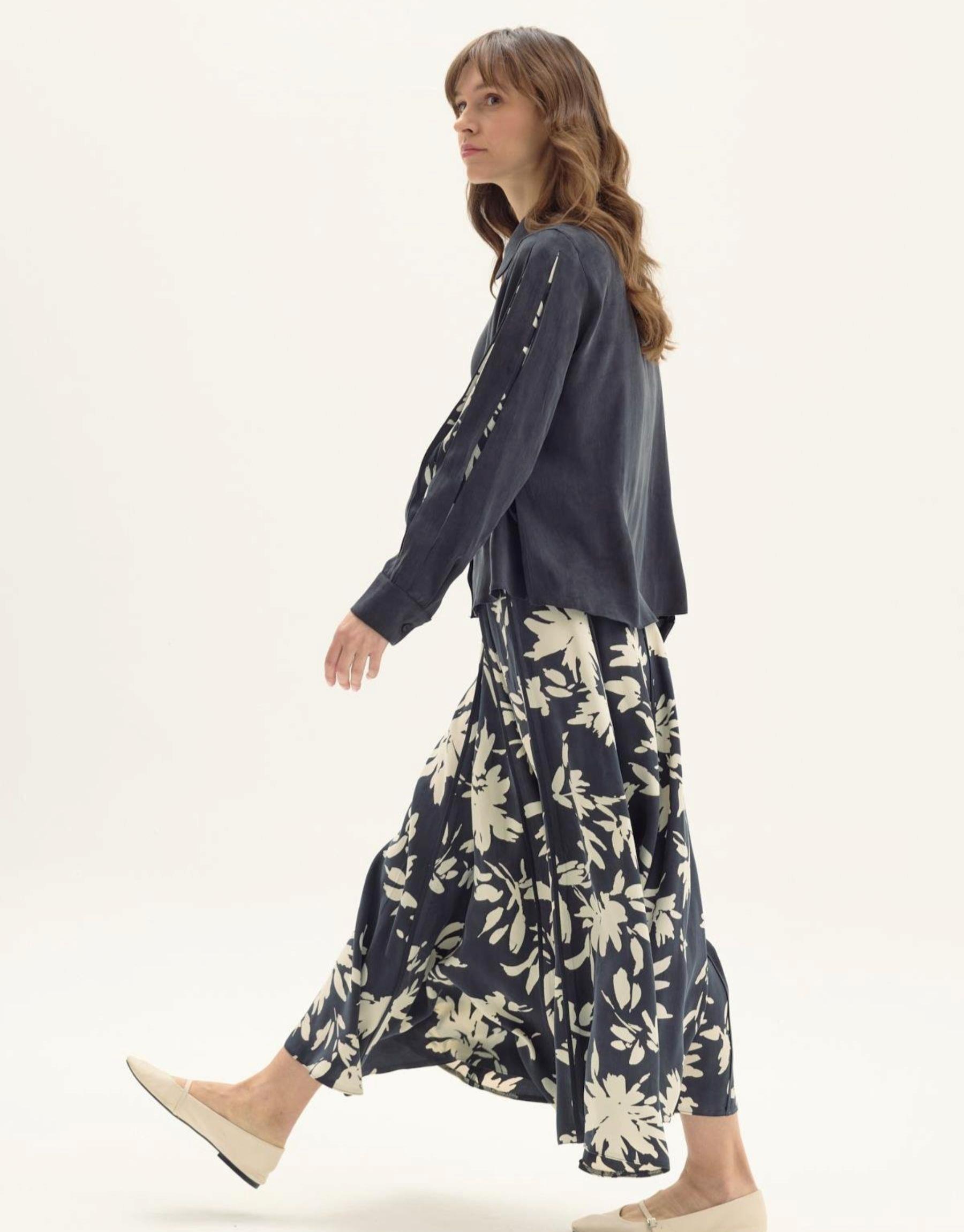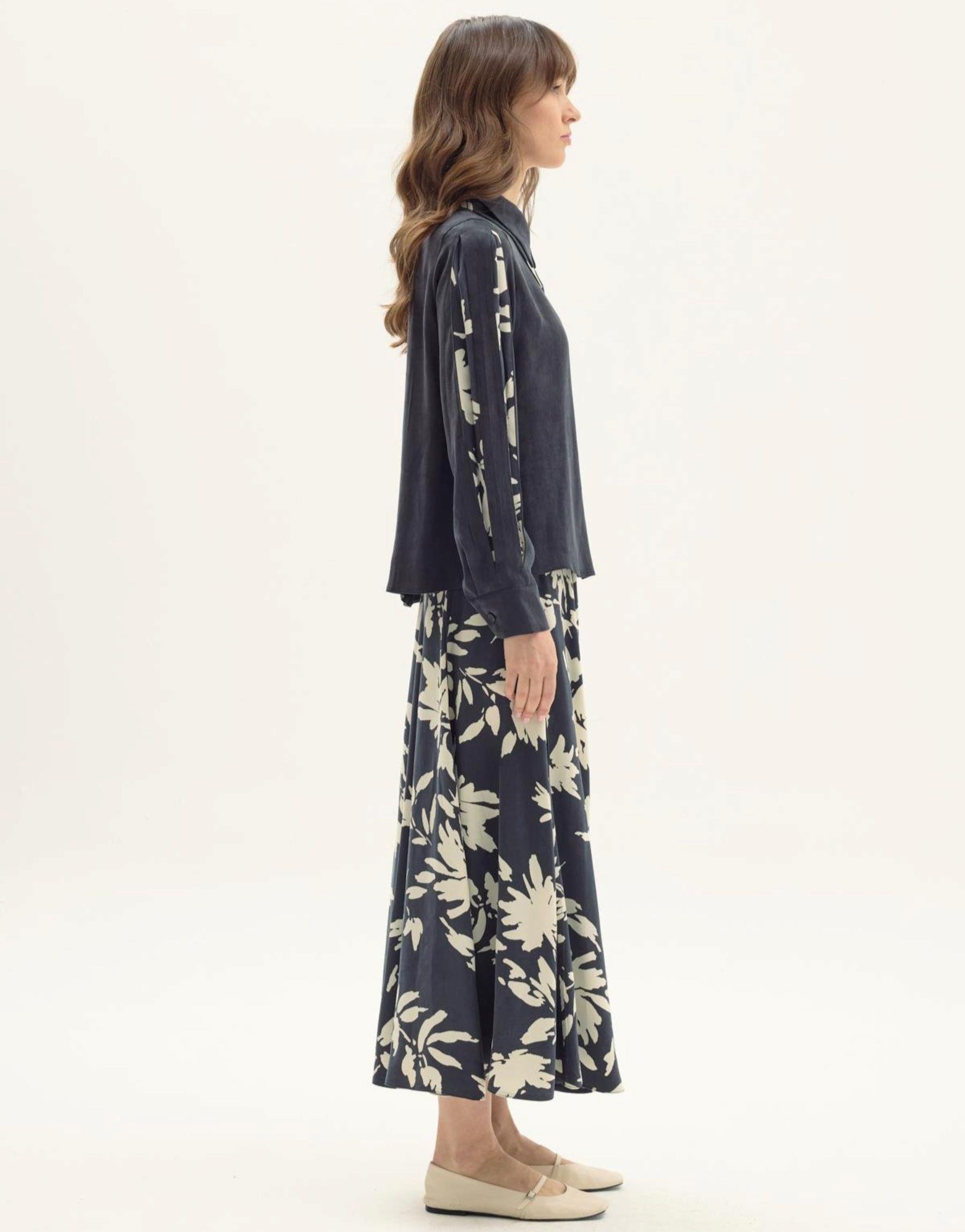 Blanc Desenli Rayon Viskon Pileli Mavi