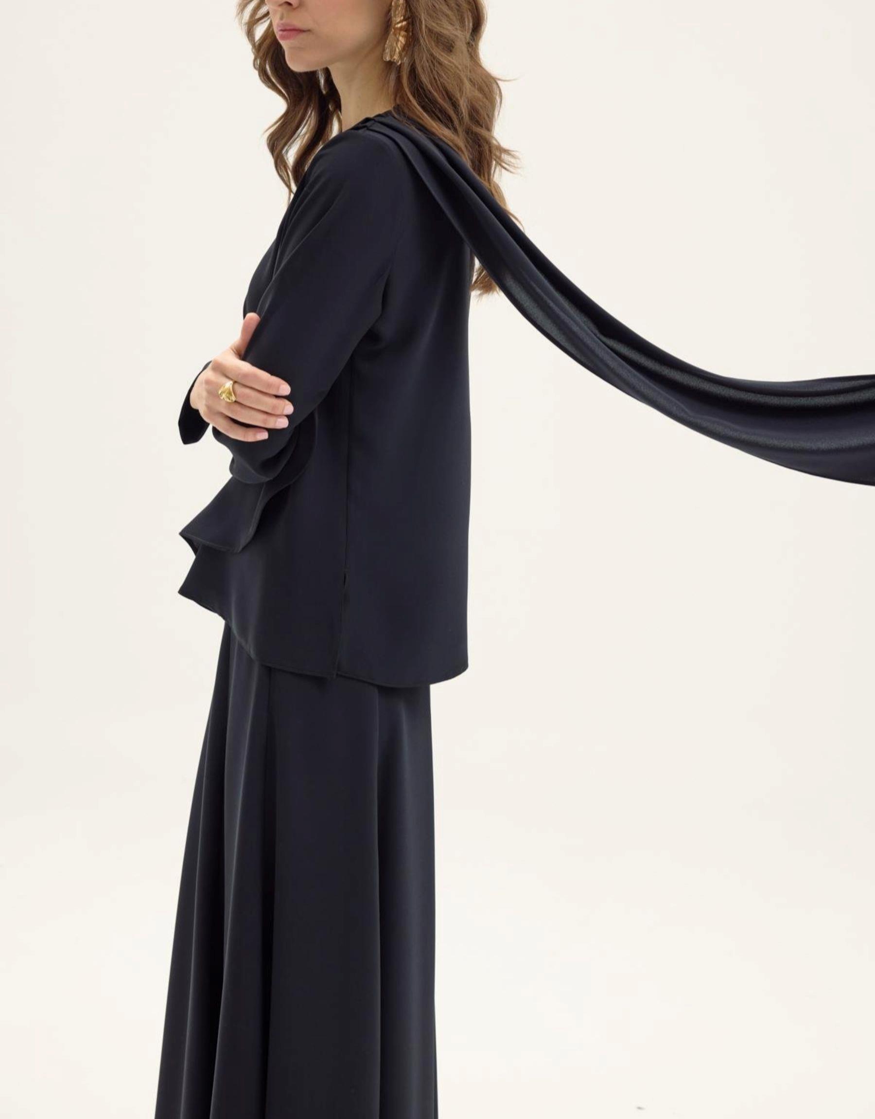 Elena Saten Pantolonlu Takım Siyah