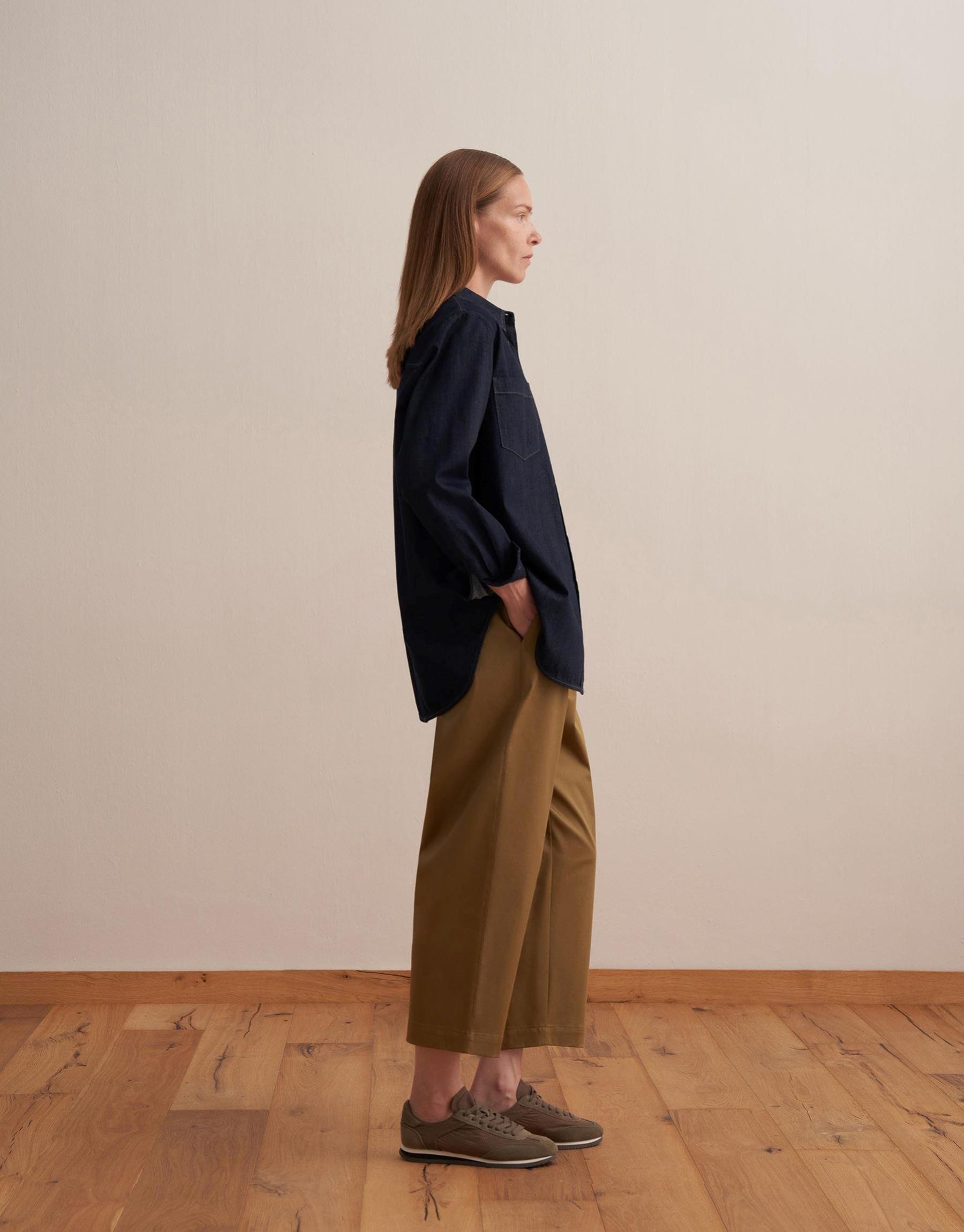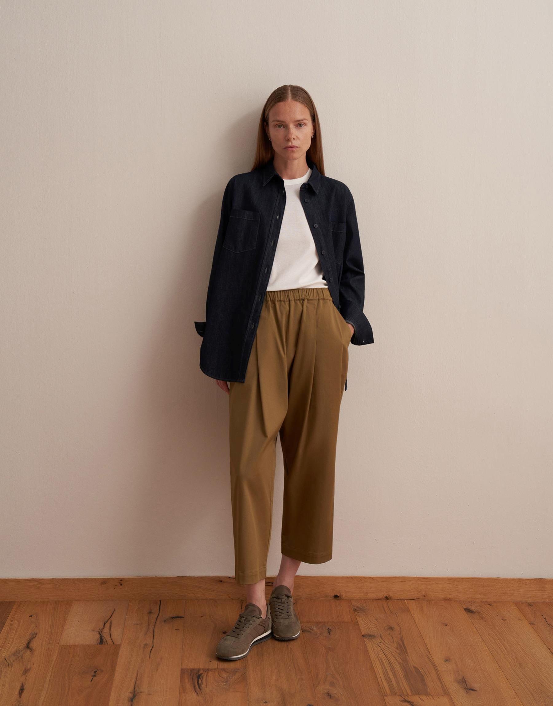Pileli Tencel Pantolon Haki